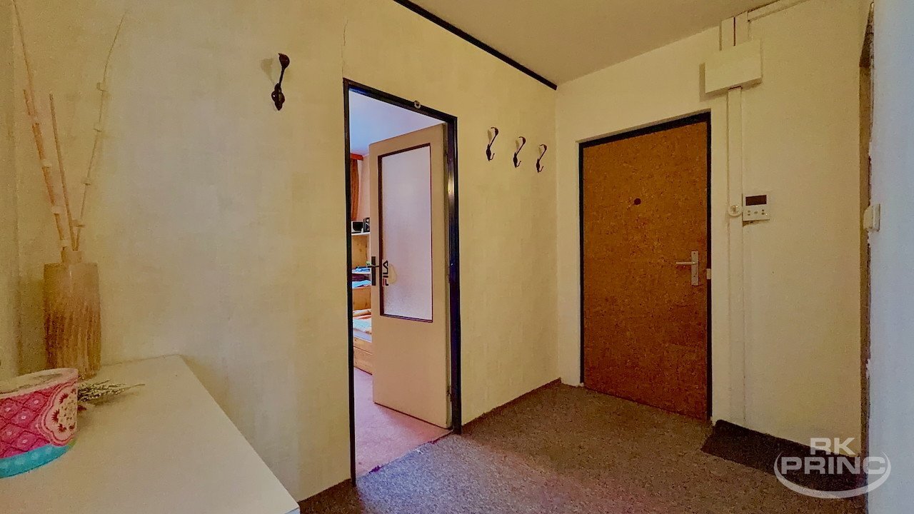 Další praktickou výhodou je druhá komora umístěná na chodbě naproti bytu, ideální pro uložení kol, sezónních věcí nebo sportovního vybavení.