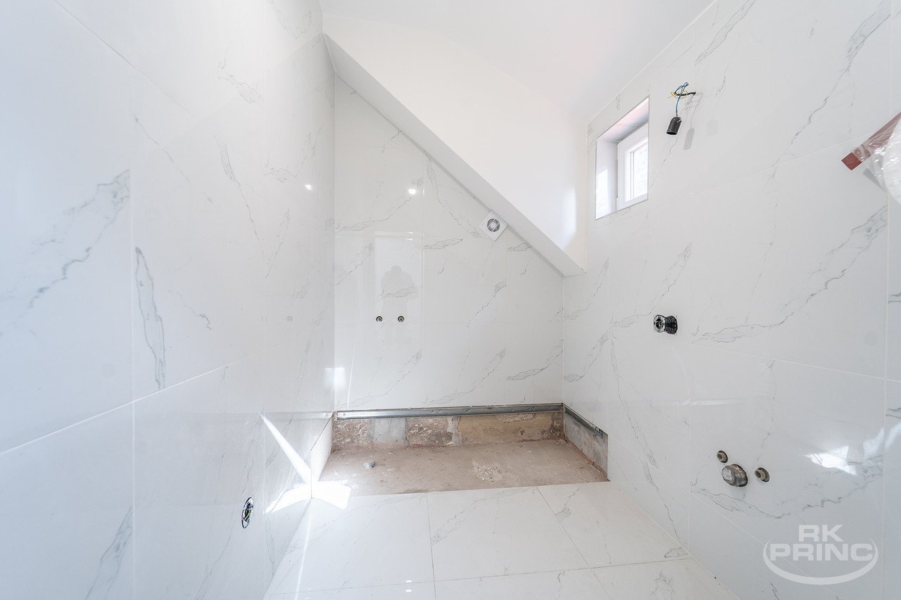 Dům má 4 podlaží (1 PP + 3 NP), je kompletně podsklepený a napojený na všechny inženýrské sítě. V suterénu je příprava pro samostatnou bytovou jednotku, v dalších podlažích obývací pokoj s kuchyní, ložnice, koupelny a balkón, v podkroví prostorná pracovna.