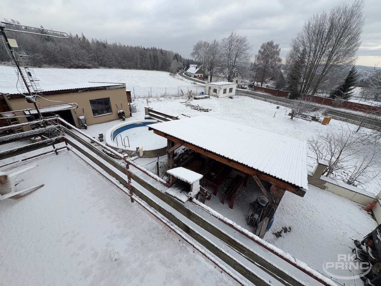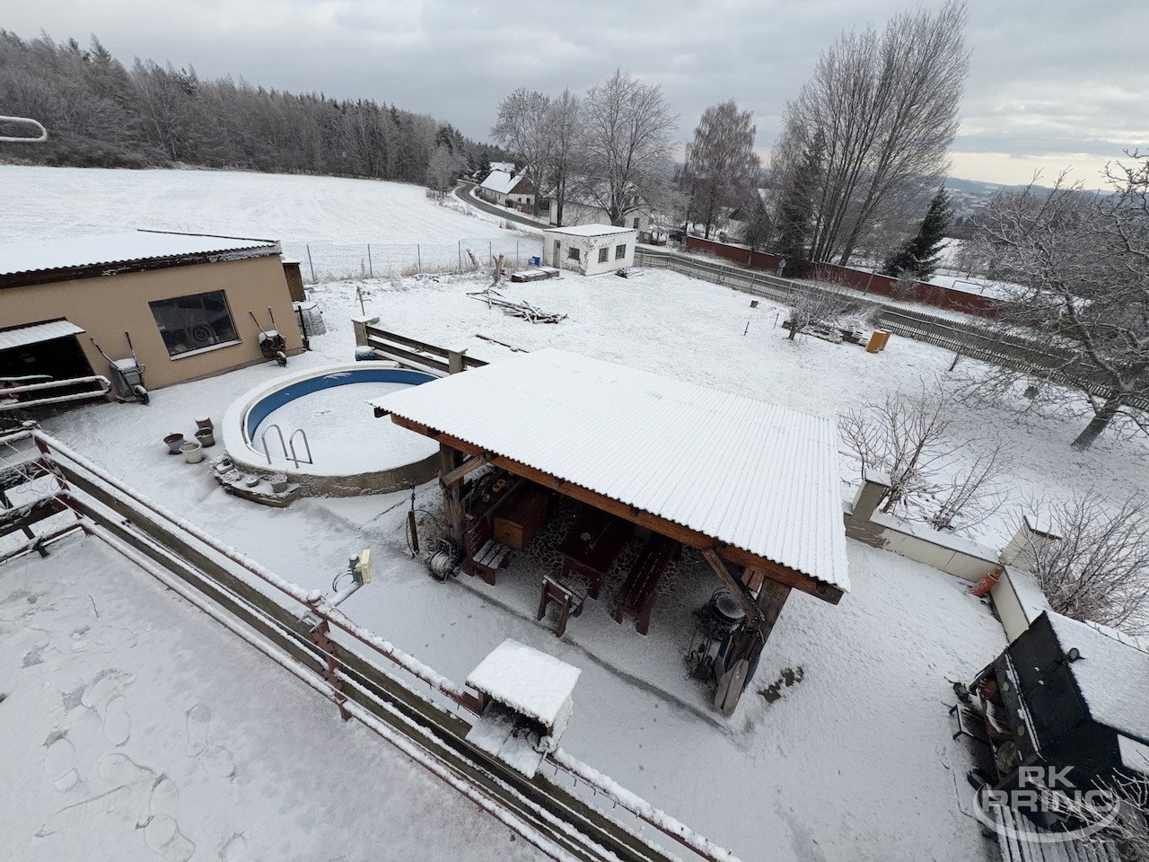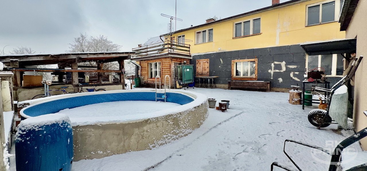 Na zahradě jsou k dispozici garáž, kolny, pergola a bazén což poskytuje dostatek prostoru jak pro relaxaci, tak pro praktické využití.