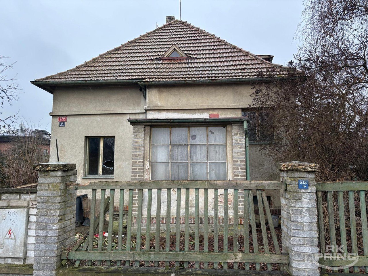 Stávající objekt: Rodinný dům se suchým sklepem, zastavěná plocha cca 100 m² (vhodný k odstranění či zásadní přestavbě)