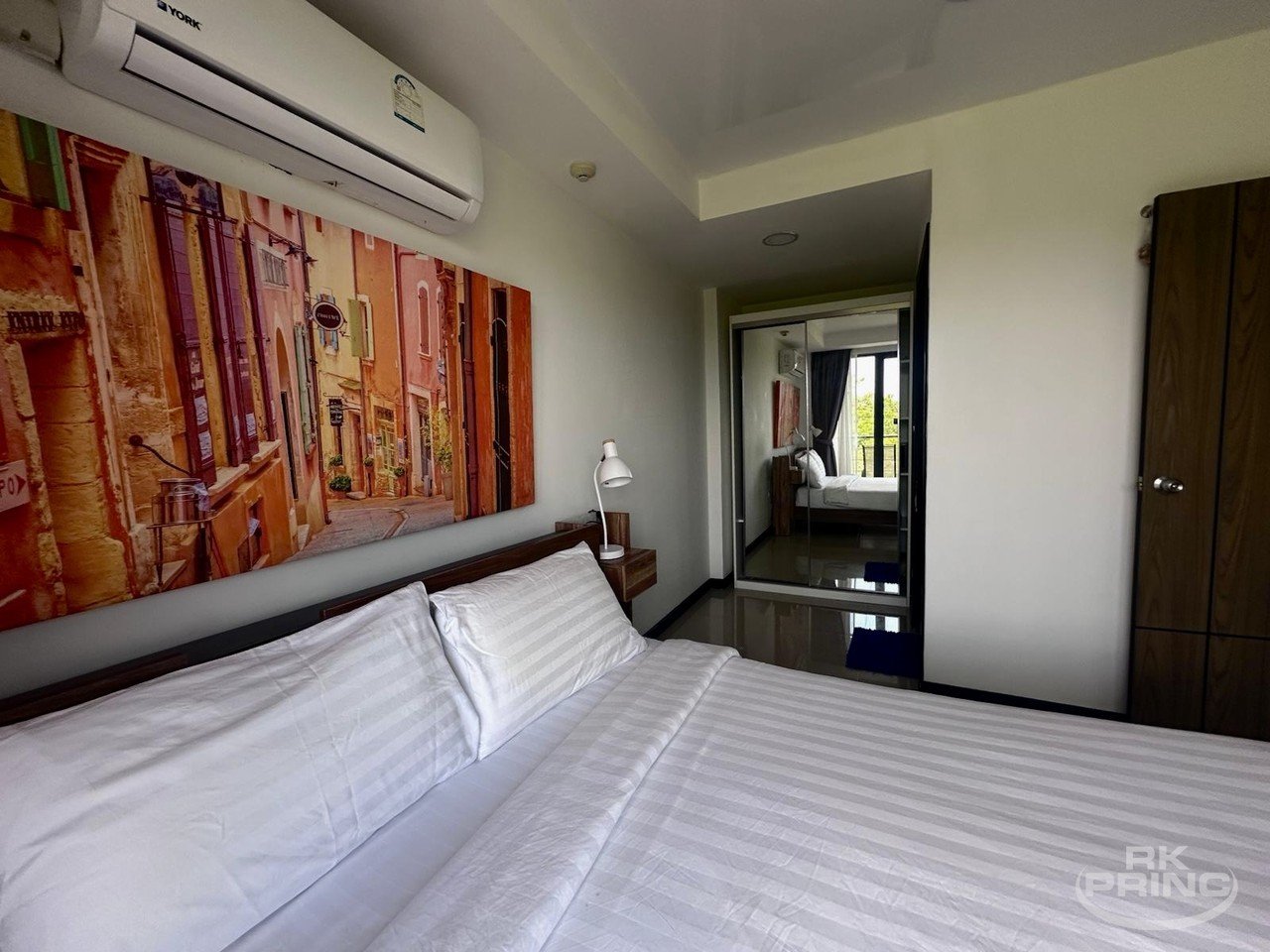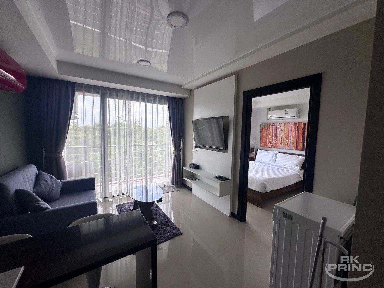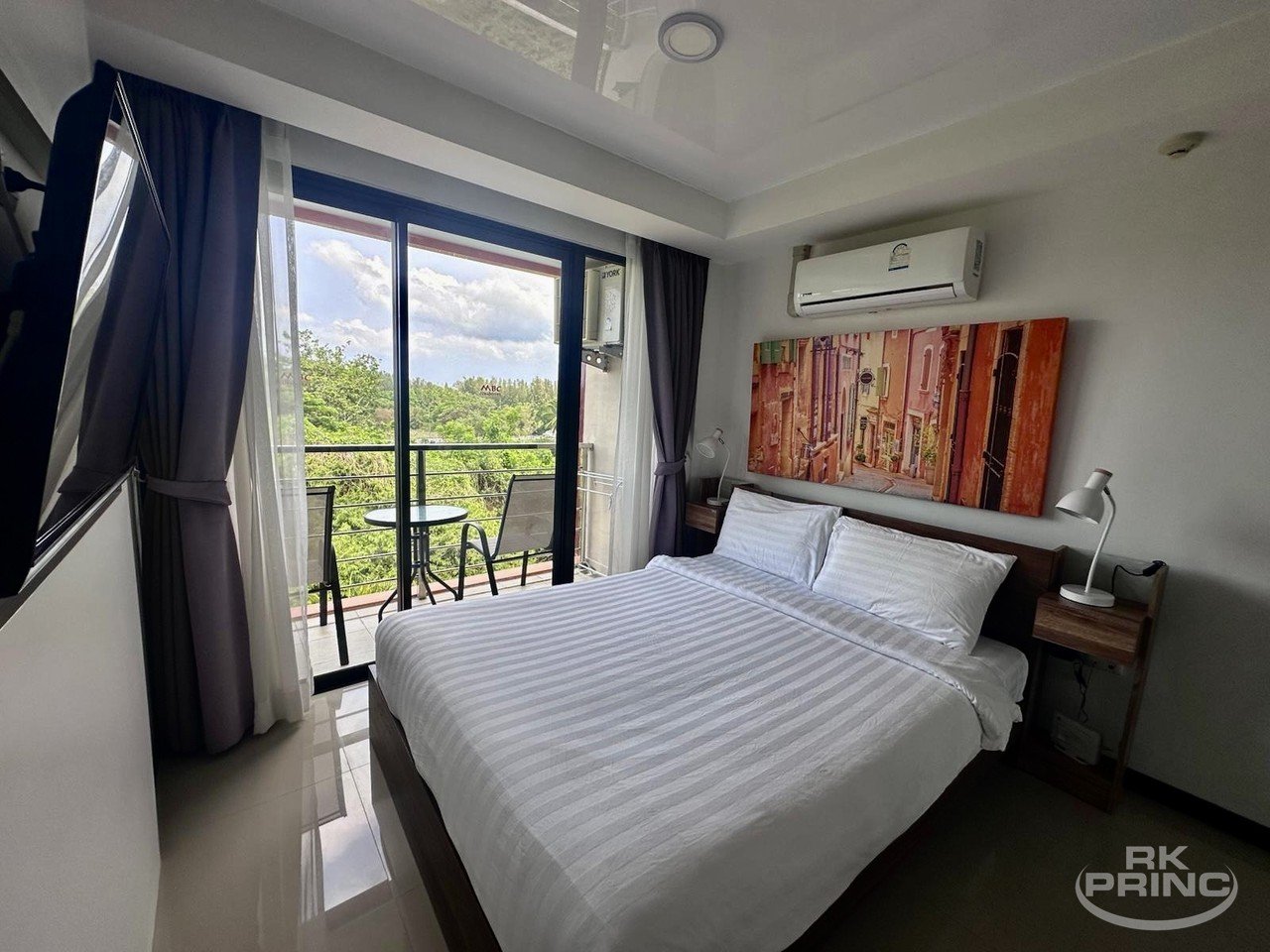 Apartmán 2+kk s balkonem - Mai Khao, Phuket, Thajsko Nabízím k prodeji světlý a velmi dobře dispozičně řešený apartmán 2+kk o velikosti 37 m² v klidné části Phuketu na pláži Mai Khao. Nemovitost se nachází v 7. patře moderního rezidenčního resortu, což zajišťuje dostatek soukromí, přirozeného světla a otevřený výhled do okolní tropické zeleně.