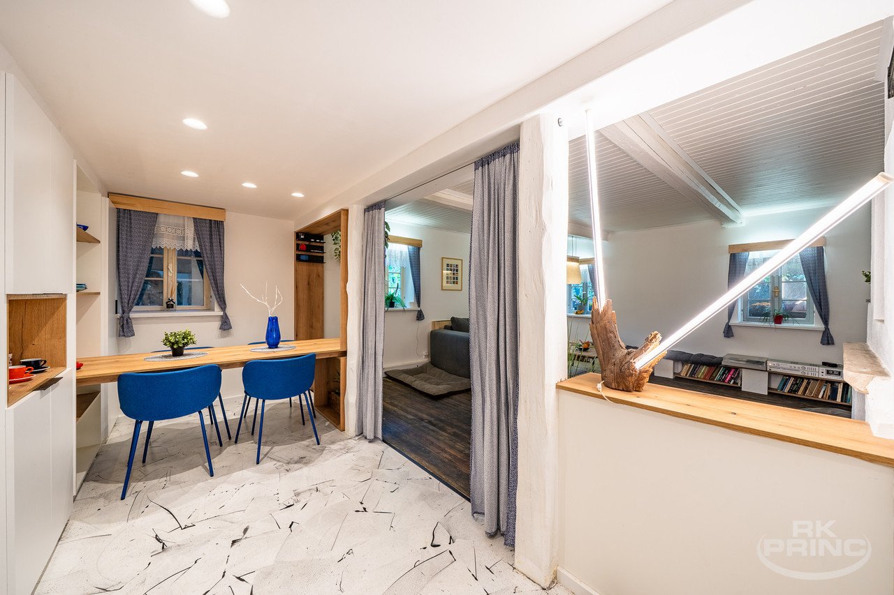Unikátní 350 let stará chalupa po kompletní stylové rekonstrukci. Nabízíme k prodeji naprosto výjimečnou nemovitost – 350 let starou chalupu, která si zachovala svou původní atmosféru, ale prošla citlivou, komlpetní a designovou rekonstrukcí interiéru.