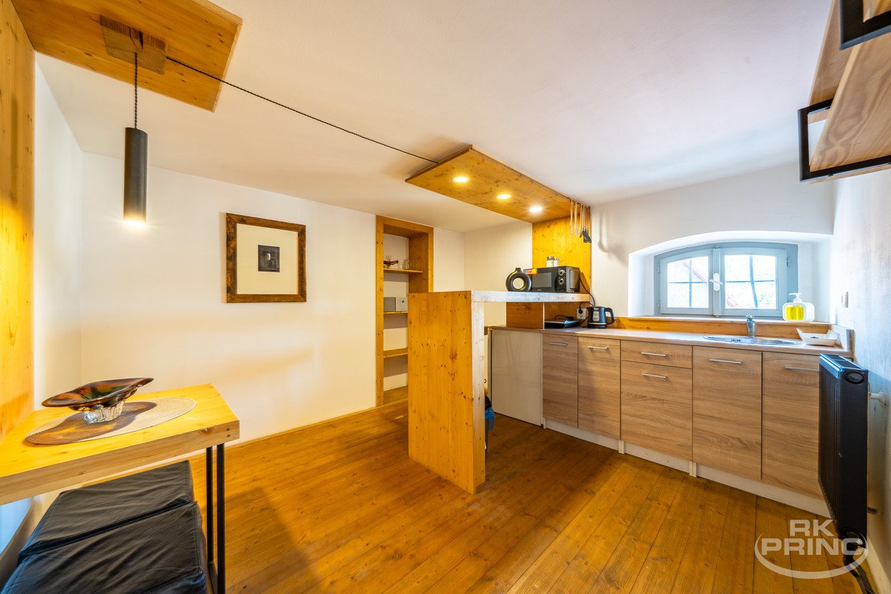 - volný půdní prostor s možností rozšíření pro další apartmánový provoz,