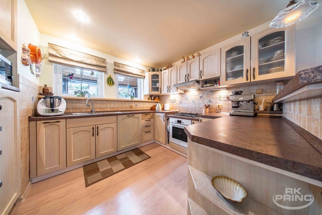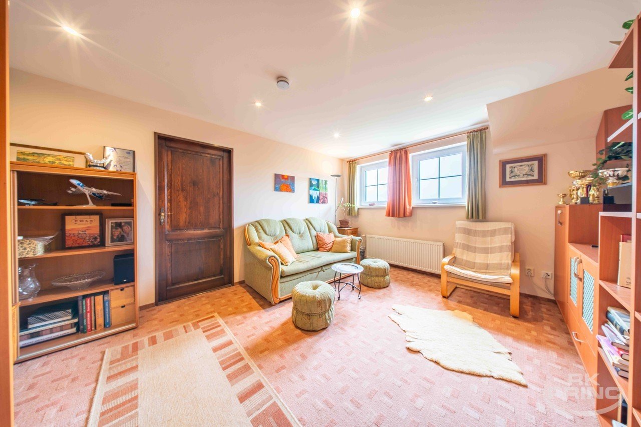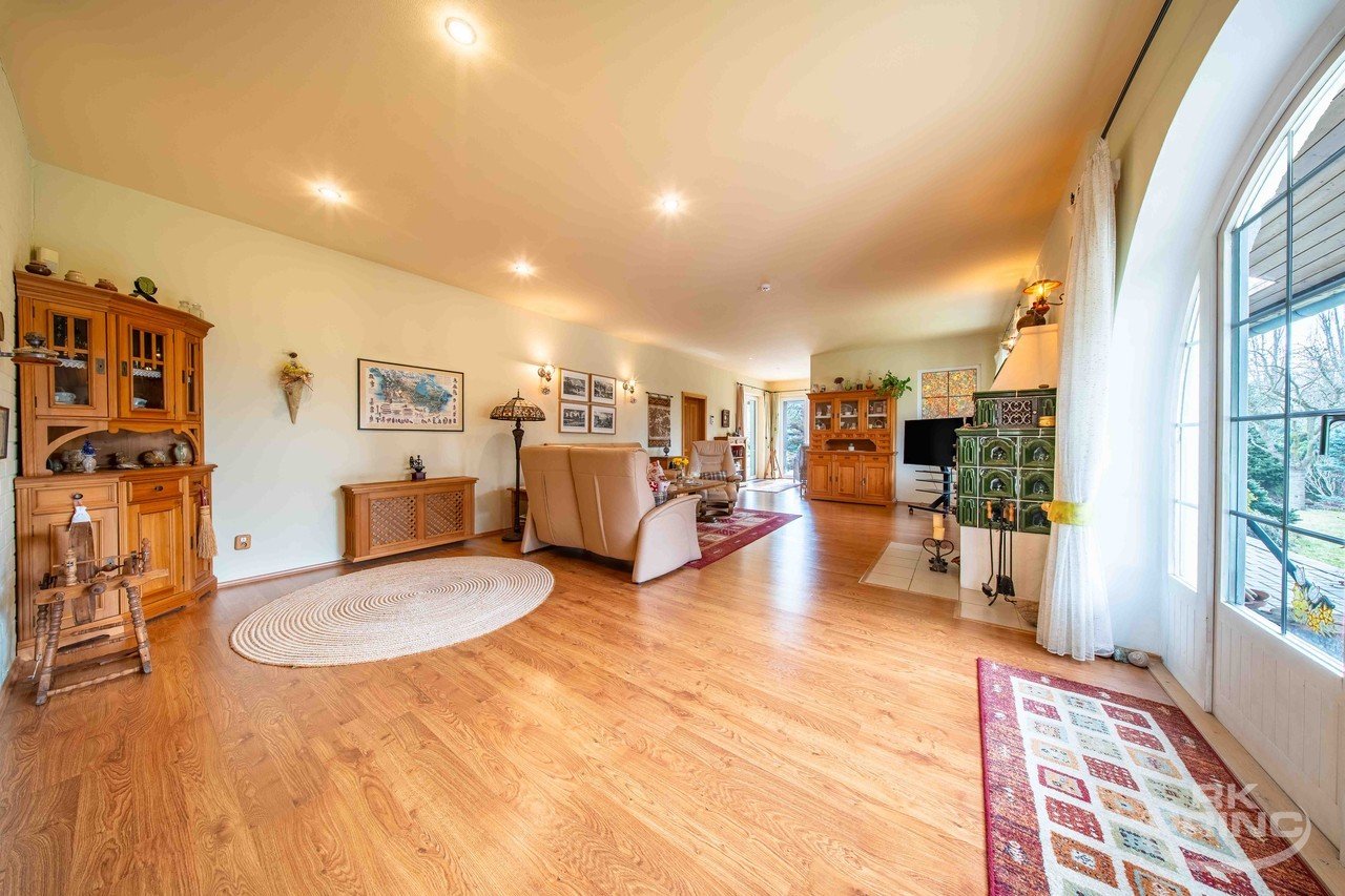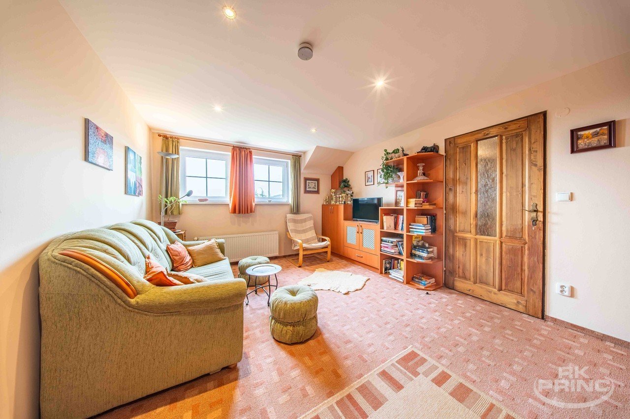 Hlavní obytná část domu je navržena s důrazem na prostor, funkčnost a pohodlí každodenního života. V přízemí( 5+1+2 velká technická místnost s vlastním wc) se nachází kuchyně propojená s jídelnou, prostorný obývací pokoj, pracovna, koupelna se sprchovým koutem, prádelna a technická místnost, která nabízí nadstandardní úložné možnosti i prostor pro volnočasové aktivity. V patře jsou čtyři pokoje, šatna a soukromá koupelna s vanou náležící k jedné z ložnic.